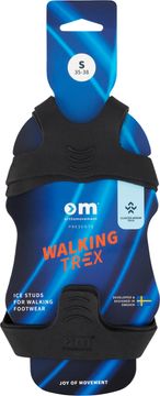 Håll dig säker och stadig på halkiga utomhusytor vid promenad med OM Walking Trex. Utformad för enkel användning och underhåll, så att du kan fokusera på dina utomhusäventyr med trygghet. Kom bara ihåg att piggar kan göra skorna hala på släta ytor eller inomhus så se till att då avlägsna Walking Trex från skon.
