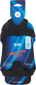 Håll dig säker och stadig på halkiga utomhusytor vid promenad med OM Walking Trex. Utformad för enkel användning och underhåll, så att du kan fokusera på dina utomhusäventyr med trygghet. Kom bara ihåg att piggar kan göra skorna hala på släta ytor eller inomhus så se till att då avlägsna Walking Trex från skon.