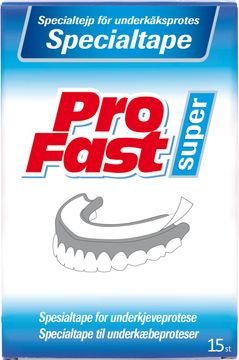 ProFast Specialtape används i första hand till underkäkesproteser och garanterar12 timmars fixation mellan protes och slemhinna. Den används i de svårare fallenmed låg crista och vid rikligt salivflöde.