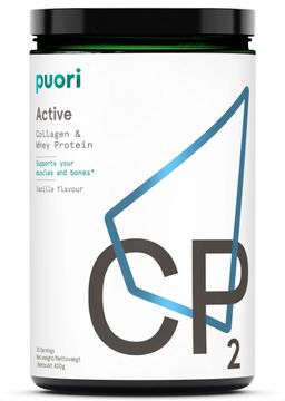 Vassleprotein med hydrolyserade kollagenpeptider för en aktiv livsstil.