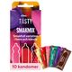 RFSU Tasty 10 st - kondomfavoriter med doft och smak. RFSU Tasty är en mix av olika transparenta glidmedelsbehandlade latexkondomer med behållare och arom.