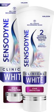 Sensodyne Clinical White, är en whitening tandkräm som är speciellt utformad för dig som önskar vitare tänder eller lider av ilningar. Med kliniskt bevisade ingredienser bidrar Clinical White med 2x nyanser vitare tänder* genom att polera, tar bort och förhindrar missfärgningar. Upplever du ilningar efter tandblekning är denna produkt utformad för dig då den både bevarar dina vita tänderna och motverkar ilingar. *Efter 8 veckor med borstning två gånger dagligen.
