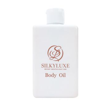 Silkyluxe kroppsolja är en exklusiv blandning av jojobaolja, druvkärnolja, olivolja och E-vitamin. Den är utformad för att ge huden en mjuk och smidig känsla och lämnar en silkeslen finish som varar hela dagen. Oljan absorberas snabbt utan att kännas kladdig, vilket gör den lämplig för daglig användning. Perfekt efter en solig dag på stranden eller mitt i höst och vinter mörkret.