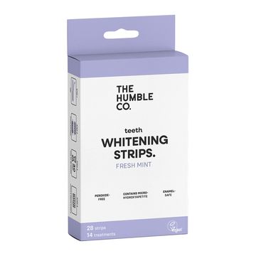 "The Humble Co. Whitening Strips är tillverkade med naturliga ingredienser och en peroxidfri, skonsam formula som skyddar emaljen och samtidigt ger ett effektivt resultat. Som alla Humble Co.s pordukter är de certifierade av The Vegan Society och fria från Forever Chemicals. Förpackningen innehåller totalt 28 remsor - 14 för överkäken och 14 för underkäken - vilket räcker till 14 behandlingar. Varje behandling tar cirka 30 minuter, vilket gör det enkelt att inkludera tandblekning i din dagliga rutin. Med Smak av Mint"