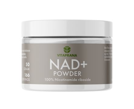 Nikotinamidribosid, även känt som NAD (NR), är ett ämne som finns naturligt i kroppens celler och spelar en central roll i vår ämnesomsättning. NAD+ Powder från Vitaprana innehåller 300 mg ren NAD per servering och består enbart av denna aktiva ingrediens – helt utan tillsatser eller fyllnadsmedel. Pulvret kan tas direkt i munnen för enkel och snabb användning.