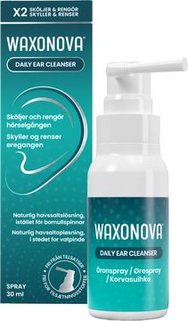 • Waxonova Daily Ear Cleanser rengör den yttre hörselgången och förebygger uppbyggnad av öronvax som kan orsaka hörselnedsättning.